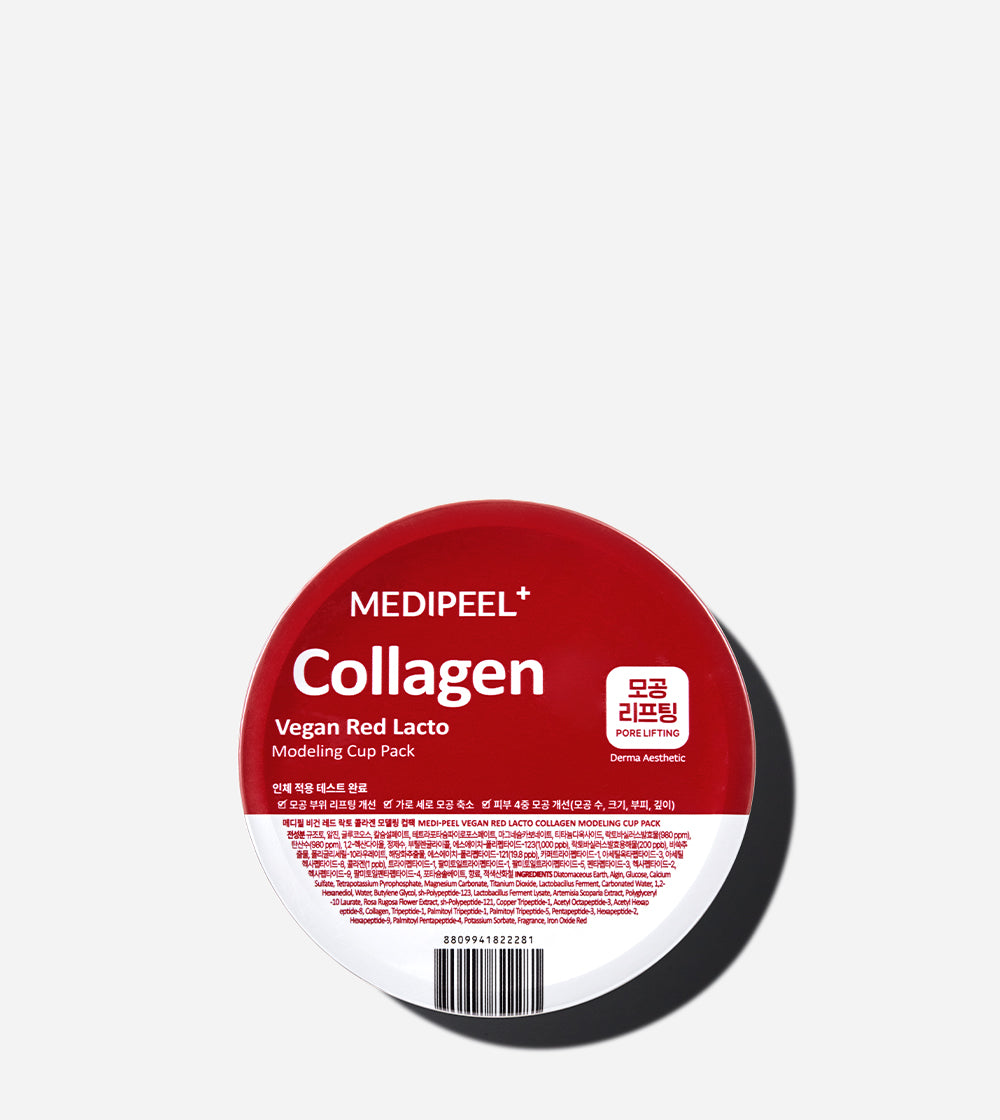 MEDI-PEEL VEGAN RED LACTO COLLAGEN MODELING CUP PACK: A vegan modeling cup pack with red lacto collagen for pore care and firming.